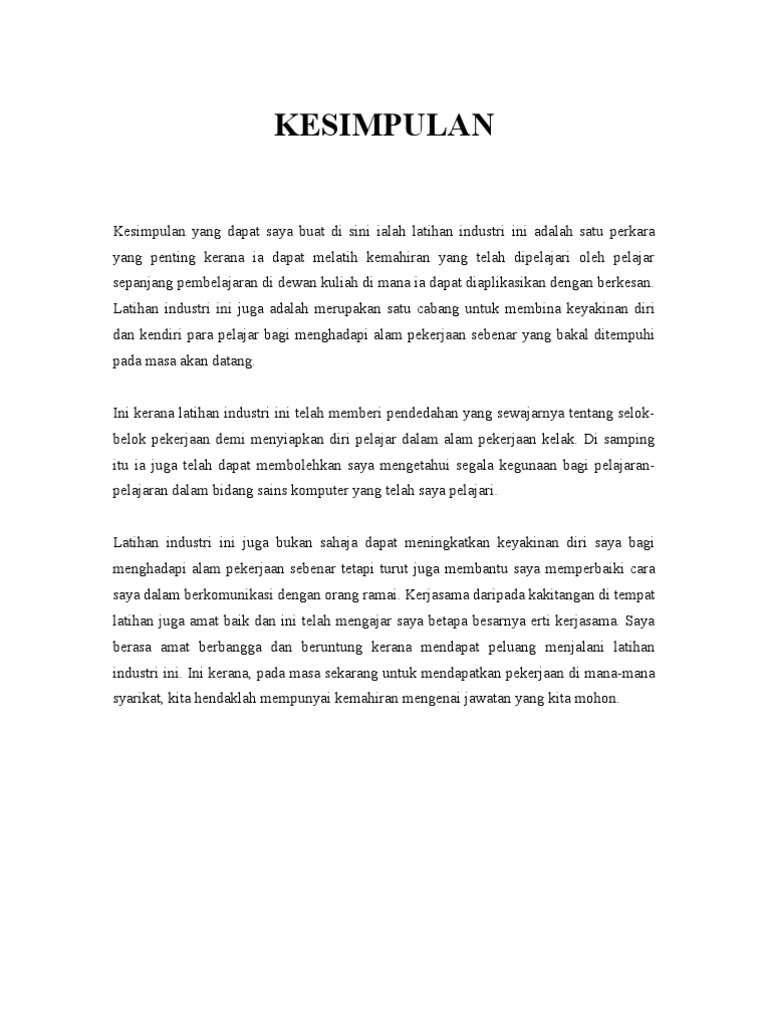 Muhd zulfadhli bin ismail isi kandungan halaman. Di bawah ini akan saya berikan sedikit contoh penutup prakerin lebih tepatnya kesimpulan dan saran. 27 hingga 28 februari 2019 rabu hingga khamis masa.
