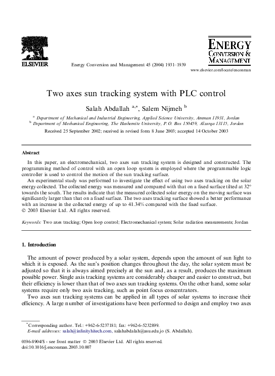 Pdf Two Axes Sun Tracking System With Plc Control S Abdalah Academia Edu